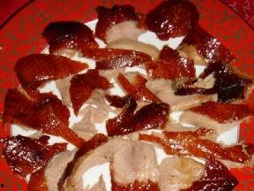 4. 片皮:烤好的鸭子要趁热片皮,这样皮才会更加酥脆。